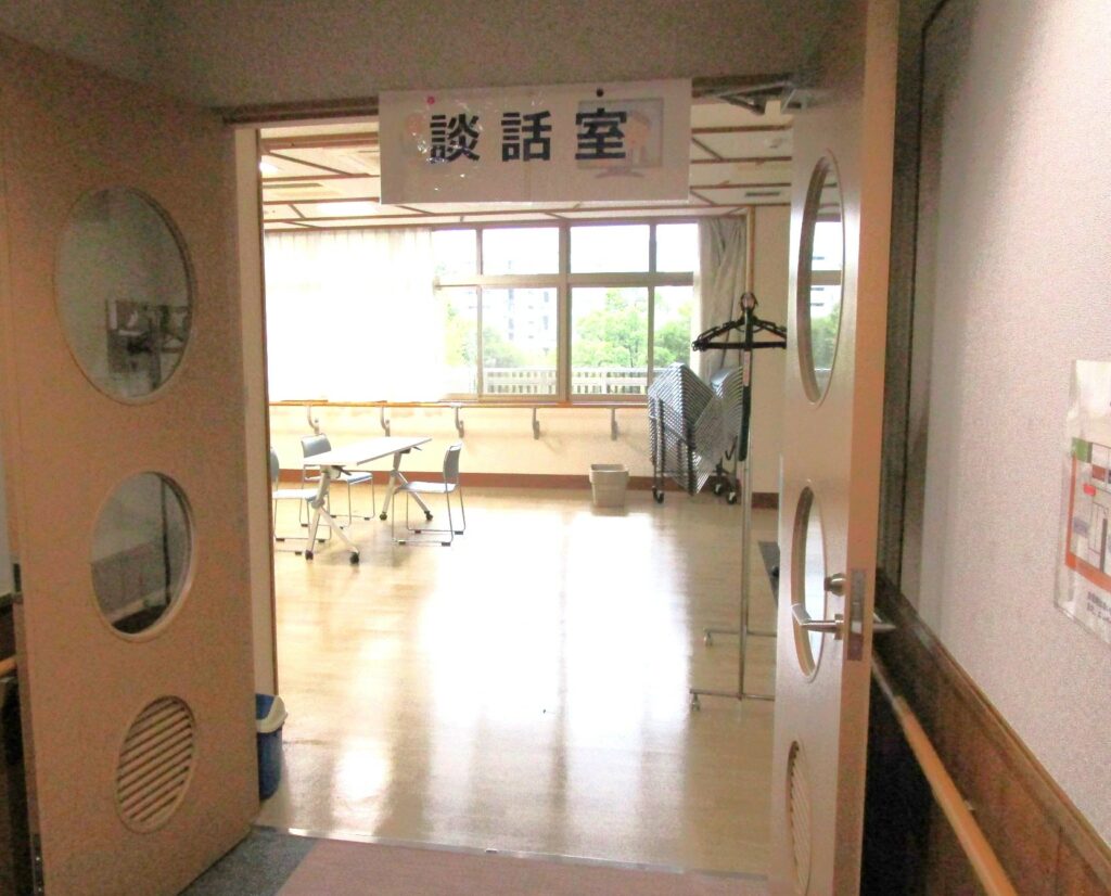 下の写真のように、入口の上に「談話室」の掲示をしています。