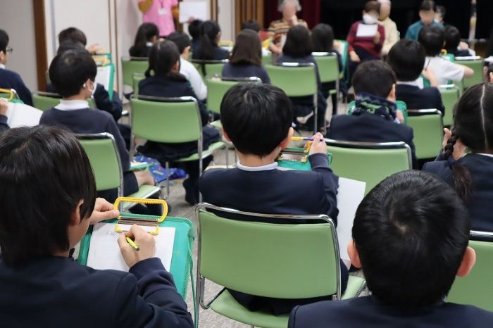 生徒さんたちはうなずいたり、首をかしげたり、不思議そうな表情だったり、楽しそうだったり、リアクションはさまざまです。