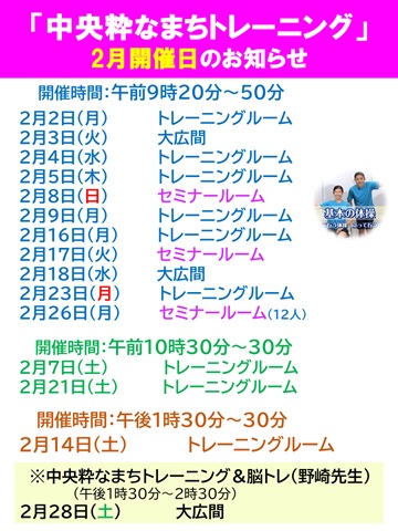 中央粋なまちトレーニング2月スケジュール
