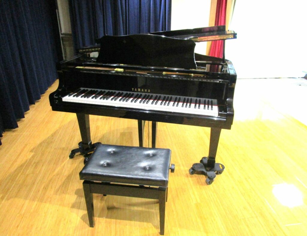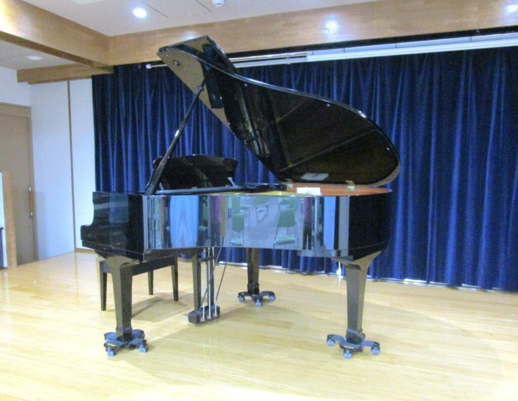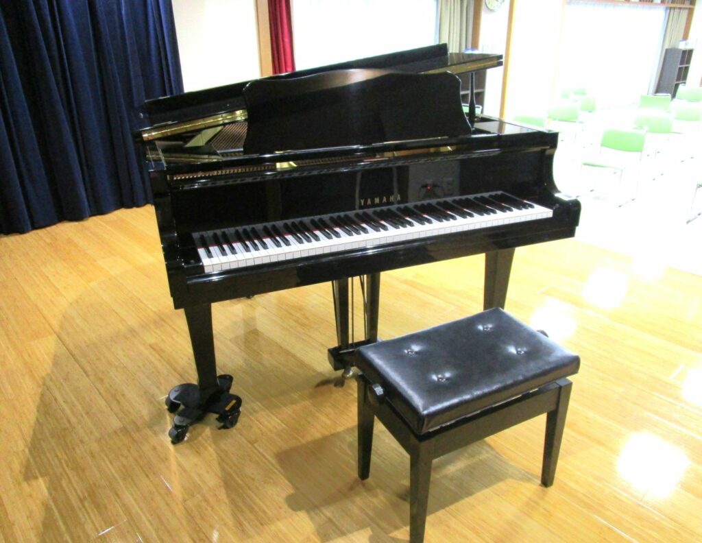 桜川敬老館には大広間(ホール)のステージ上にグランドピアノがあります。