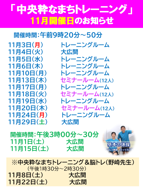 「中央粋なまちトレーニング」の11月の開催は14回です。