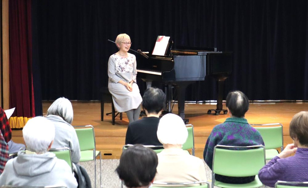 1月6日(火)午後、新しいピアノの先生・志村みつよ先生を迎えて、「みんなで歌おう」の講座を開催いたしました。