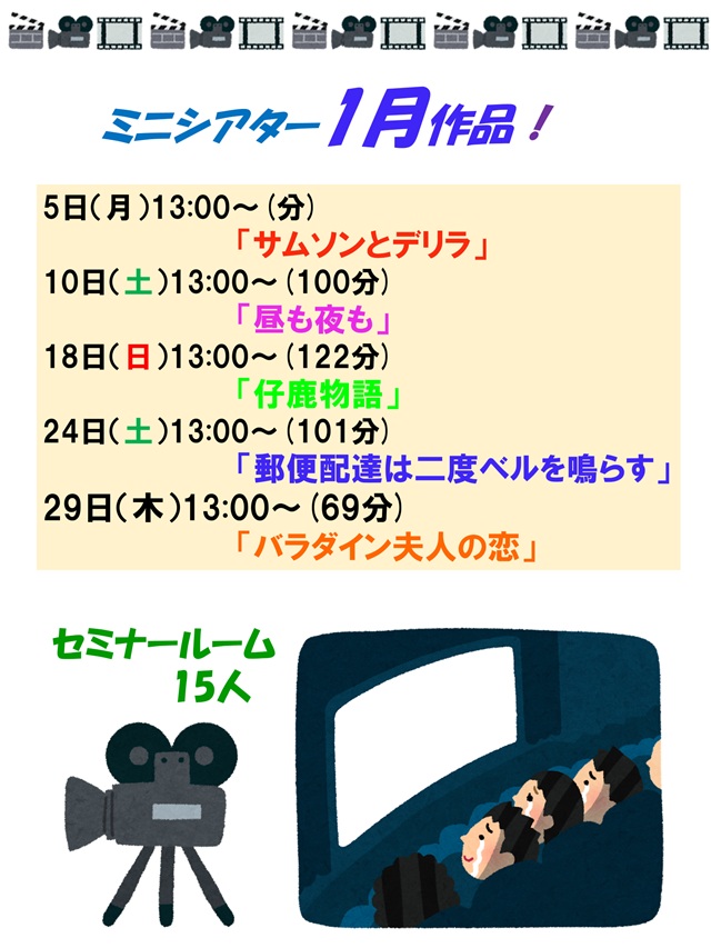 1月のミニシアターは5作品を予定しています。
