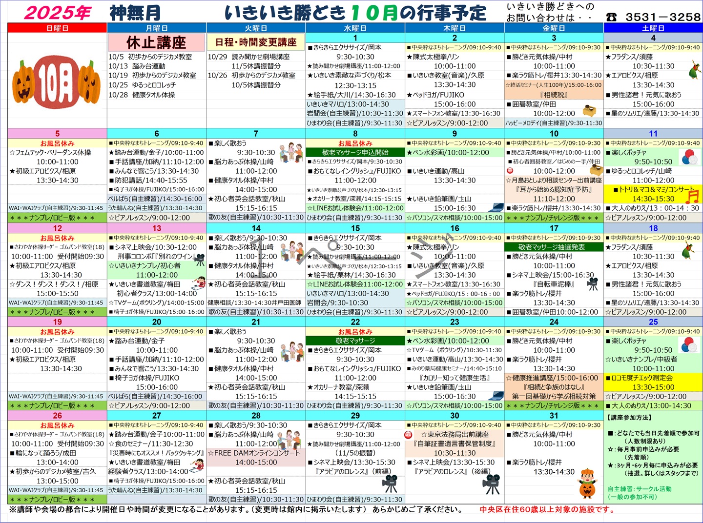 いきいき勝どき 行事予定はこちら(PDF)10月予定